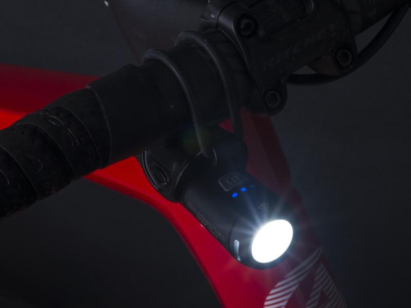 Světlo nabízí celkem 5 režimů svícení – tři konstantní a dva blikací, které lze snadno přizpůsobit aktuálním podmínkám jízdy. Praktický LED indikátor kapacity baterie umožňuje přesně sledovat stav nabití, což pomáhá efektivně volit vhodný režim a vyhnout se nečekanému vybití.