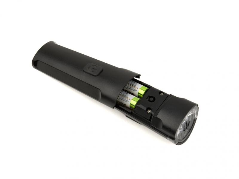 Napájení zajišťují tři zinkouhlíkové AAA baterie, které jsou součástí balení, což umožňuje okamžité použití. Univerzální držák je vhodný pro průměry řídítek od 22 do 35 mm a zvládne i oválné profily. Upevnění probíhá bez nutnosti použití nářadí, což usnadňuje instalaci i demontáž světla.