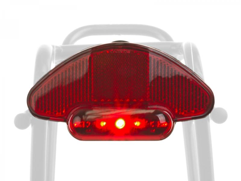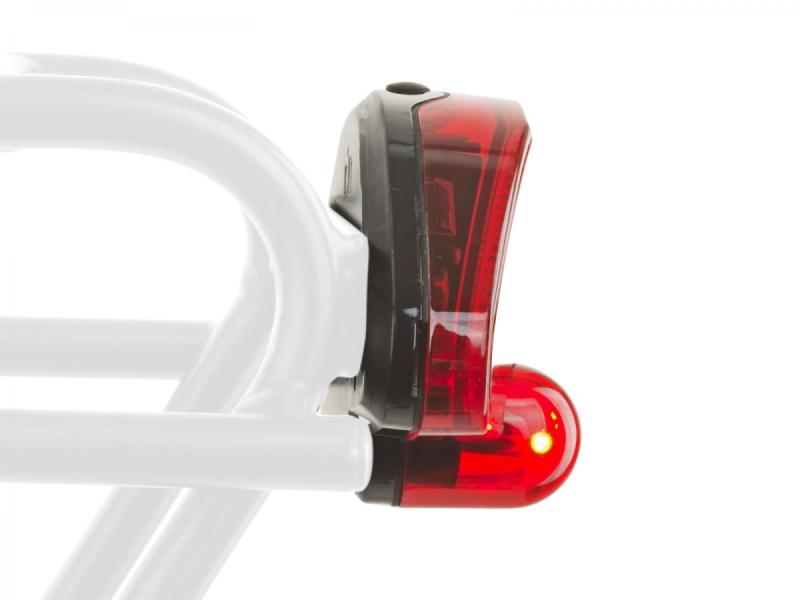 Zadní světlo s 5 LED a viditelností v úhlu 270° nabízí dva režimy svícení, vodotěsnou konstrukci a jednoduché uchycení na nosič kola.