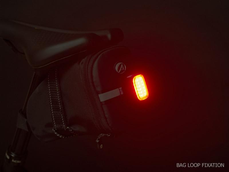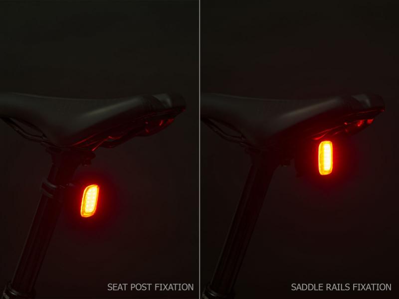 Zadní světlo s 24 COB LED diodami nabízí viditelnost ze širokého úhlu, automatický úsporný režim a rychlé USB-C nabíjení s výdrží až 8 hodin.