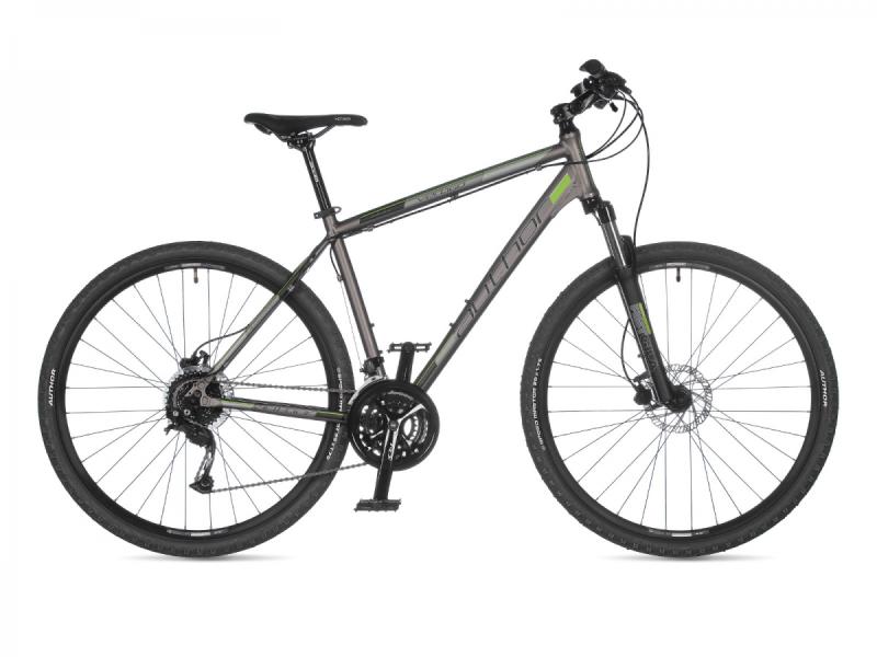 Author Vertigo 2023-24 stříbrná-matná/černá/zelená krosové kolo + výbava zdarma