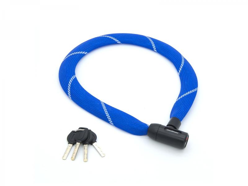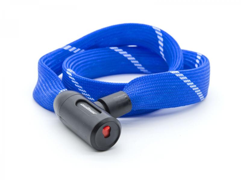 Celý zámek je obalený flexibilním potahem z polypropylenové tkaniny, která chrání povrch zamčených předmětů před poškrábáním a zároveň usnadňuje manipulaci se zámkem.