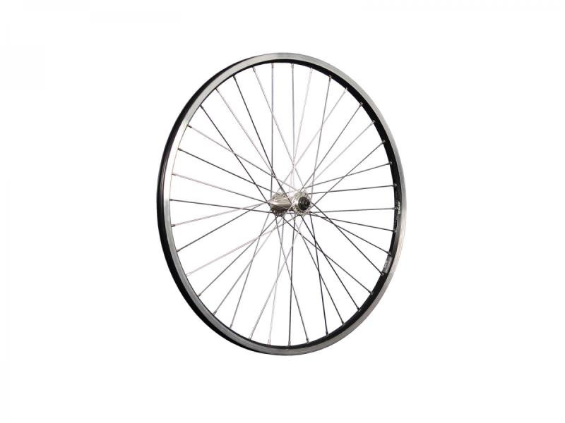 Predné zapletené koleso s odolným hliníkovým ráfikom, nerezovými drôtmi a rýchloupínacím nábojom Shimano pre jednoduchú montáž a spoľahlivý chod. zobraziť celý popis