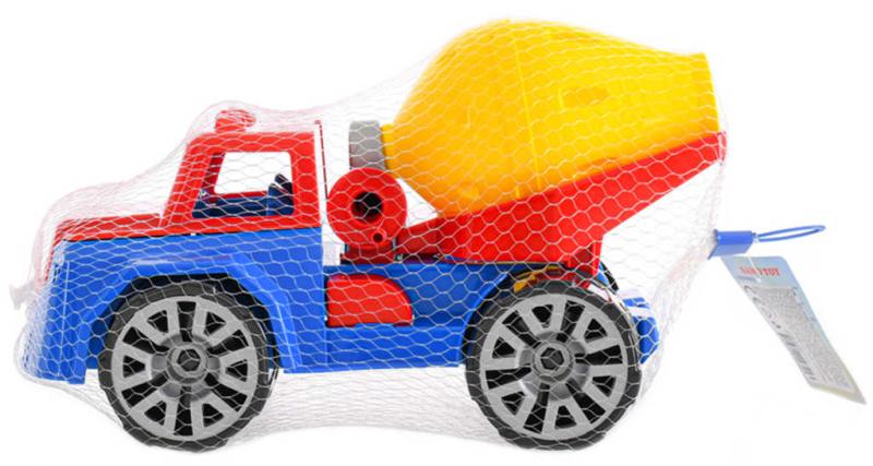 Barevná plastová míchačka s funkčními prvky, na volný chod, pro všechny malé stavitele. Pracovní autíčko, ideální pro hru na pískovišti. Korbu lze sklápět, otočný buben na kličku, buben je možno naplnit vodou nebo pískem. Baleno v síťce.