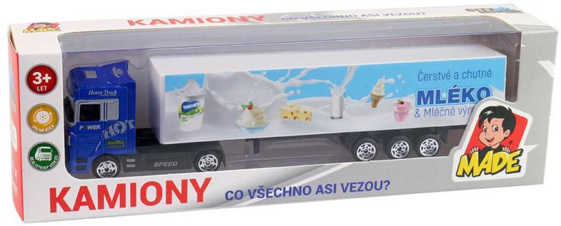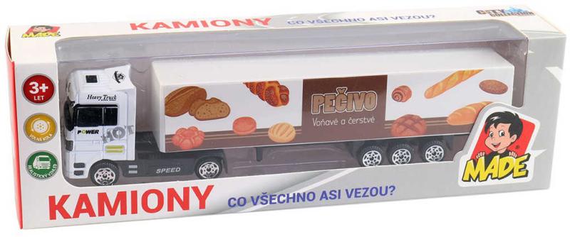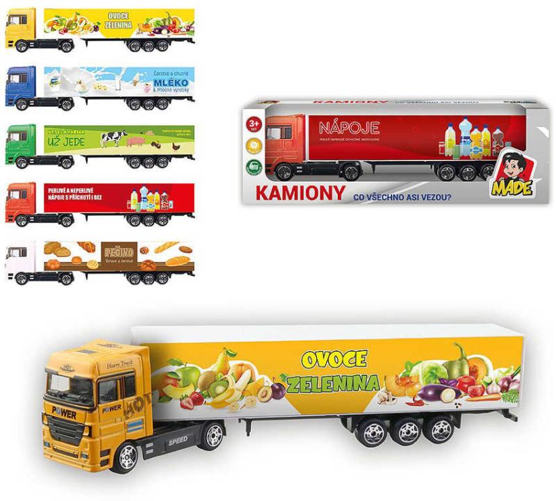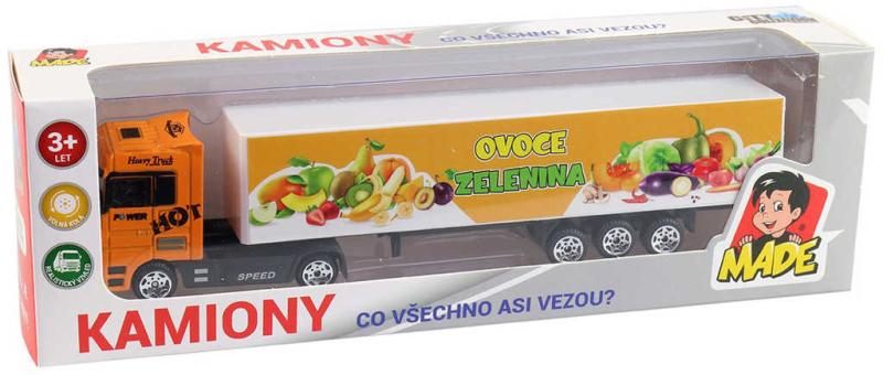 Auto kamion 20cm s potiskem potraviny volný chod 5 druhů plast