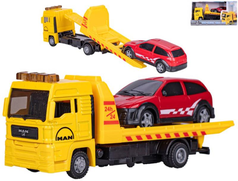 Auto odtahová služba MAN volný chod set odtahovka s autíčkem kov