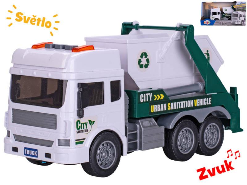 Auto popelářské kontejner 28cm na setrvačník na baterie se světlem a zvukem v krabičce