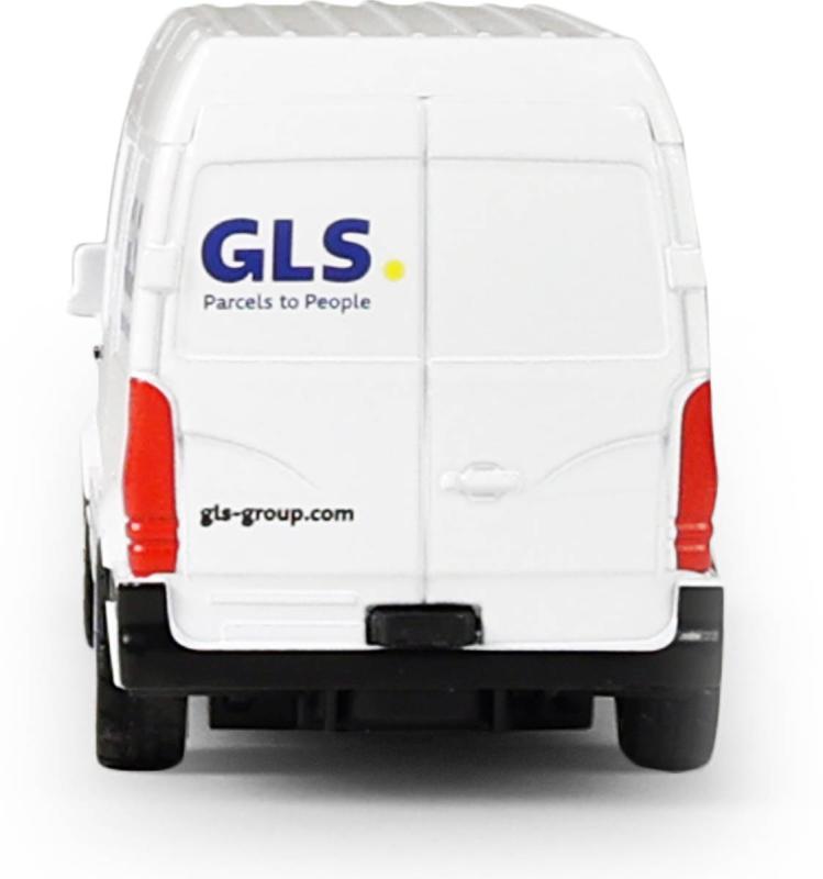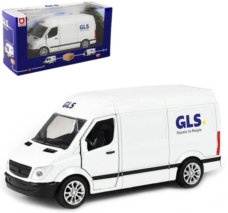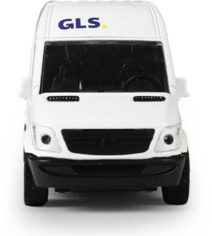 Kovové auto přepravní společnost GLS, bílá dodávka s pohonem na zpětný chod. Velikost 12cm. Otevírací dveře.Rozšiř si svůj vozový park a pořiď si tuhle originální kovovou dodávku s logem přepravní společnosti GLS. Auto má otevírací přední dveře. Jezdí na zpětný chod a jeho délka je 12cm.