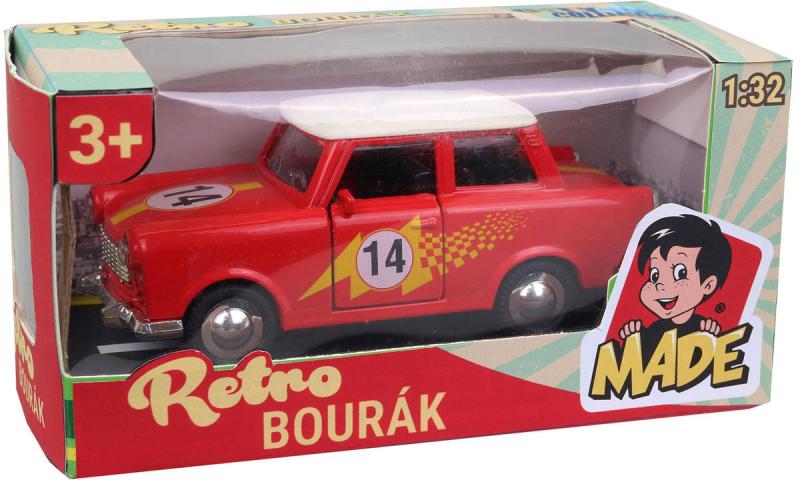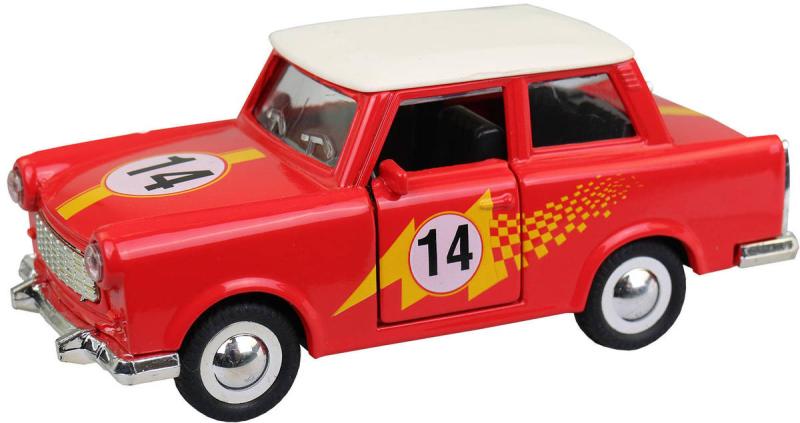 Auto červený kovový trabant, retro bourák - model z kovu a plastu, s číslem závodníka, pro všechny sběratele autíček a fandy do aut. Dveře lze otevřít, pogumovaná kolečka, měřítko 1:32.Dětská autíčka, to jsou hračky, které potěší malé i velké. Modely aut zajisté potěší nejen malé děti, ale i dospělé. Vždyť koho by krásný model auta nefascinoval?