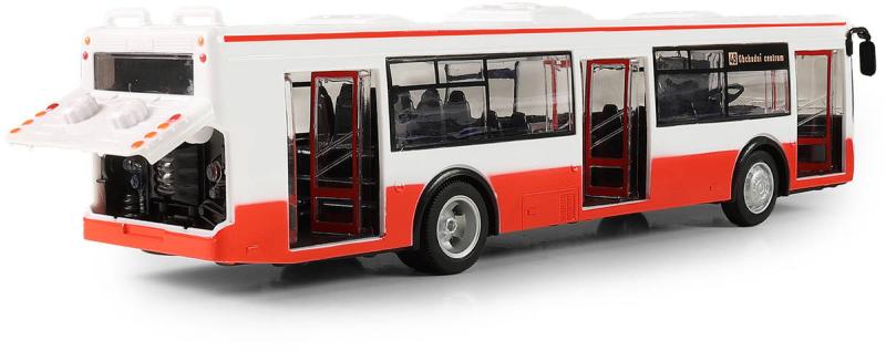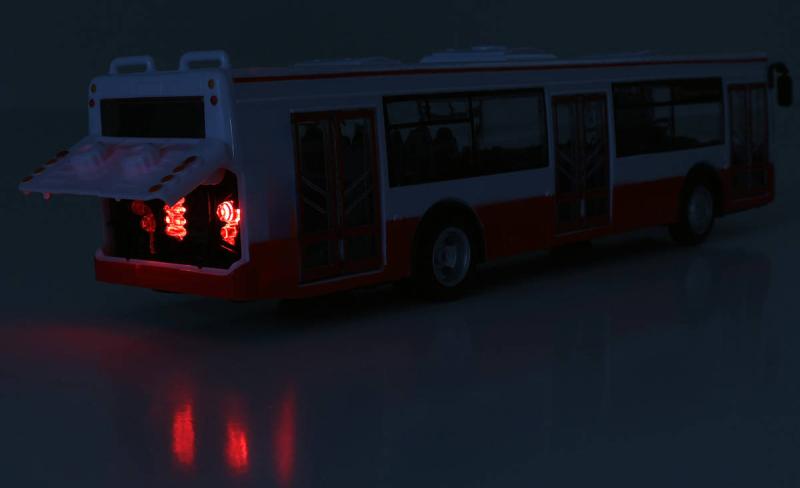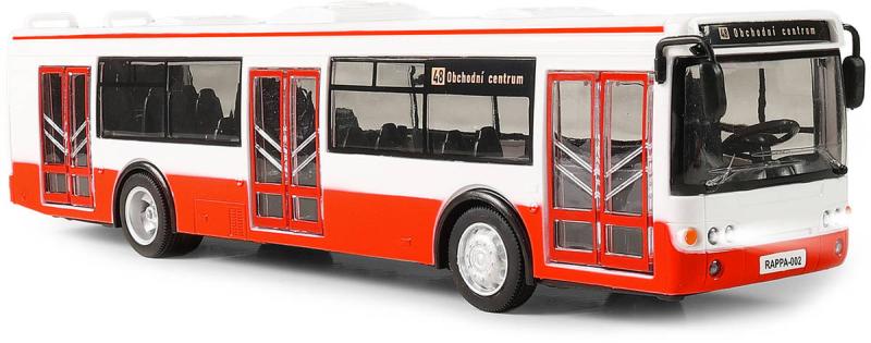 Originální autobus, který oznamuje stanice v českém jazyce, je rozhodně ten pravý dárek pro vaši jízdu! Vaše děti si ho zamilují! Dveře, lze manuálně otevřít a zavírají se pomocí tlačítka umístěného na střeše vozu. Při každém otevření se ozve hlášení, při zavření navíc blikají přední světla autobusu. Autobus v měřítku 1:43 je vyroben z plastu, jeho délka je 28 cm. Autobus jezdí na zpětný chod. Potisk názvu stanice a číslo se může lišit od vyobrazení. Tahle unikátní hračka nadchne všechny kluky i holky!