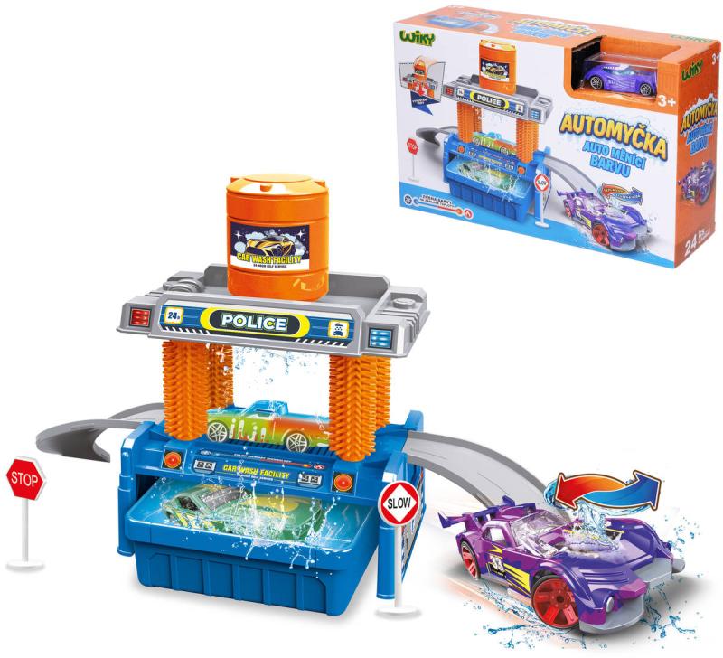 Automyčka herní set dráha s autíčkem a doplňky měnící barvu ve vodě