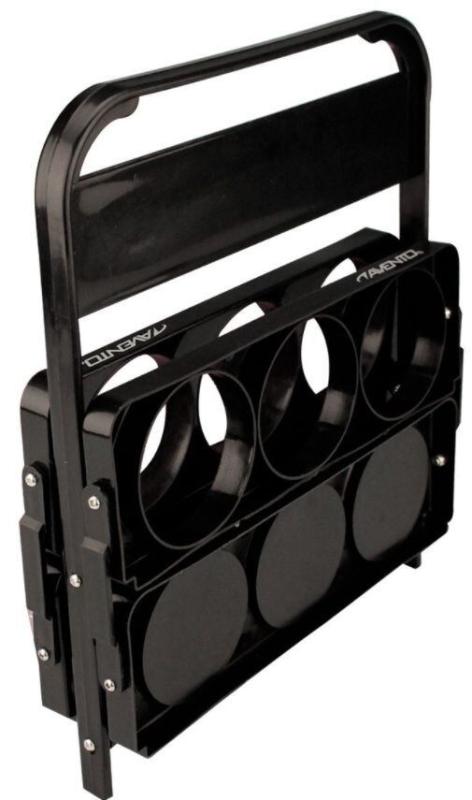 Skládací nosič lahví Avento Carrier je praktická pomůcka pro přenášení nápojů během tréninků, sportovních utkání či volnočasových aktivit. Nosič je určený pro 6 lahví s maximálním průměrem 7,5 cm. Je vyrobený z polypropylenu, jeho rozměry po rozložení jsou 28 x 32 x 18 cm a hmotnost samotného nosiče je 0,38 kg.Parametry: