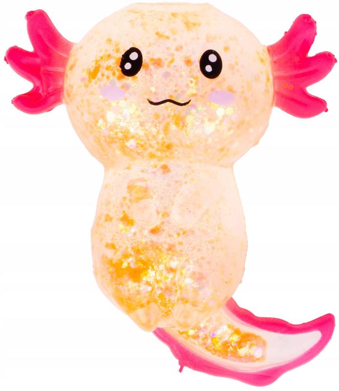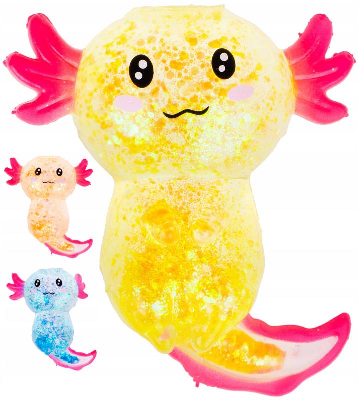 Axolotl zvířátko antistresové gelové mačkací se třpytkami 4 barvy