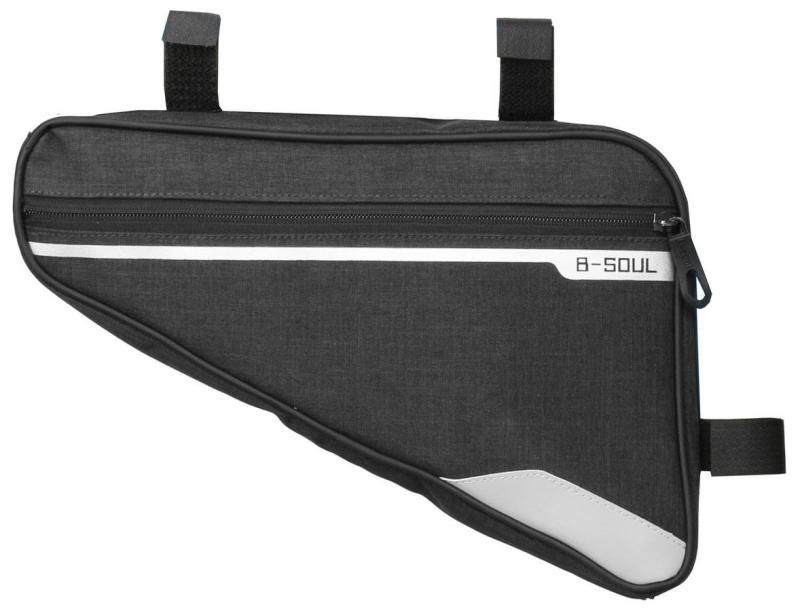 Cyklistická brašna B-SOUL Triangle 2.0 má jednoduchý a osvědčený design. Brašna je dostatečně velká na to, aby pojala osobní věci a zároveň je dostatečně malá na to, aby nijak nepřekážela při jízdě. Triangle 2.0 brašna má jednu přihrádku na zip a jednu vnější síťovanou přihrádku s rychlým přístupem.Brašna Triangle 2.0 tak poskytuje místo nejen pro klíče, peněženku a mobil, ale i pro cyklistické rukavice nebo základní nářadí pro případnou opravu. Svým tvarem brašna minimalizuje odpor vzduchu a nepřekáží nohám při šlapání. Triangle 2.0 brašna je zhotovená z pevného polyesterového plátna s vnitřním PU zátěrem, který ochrání obsah tašky před promočením i při nenadálé prudké bouřce.