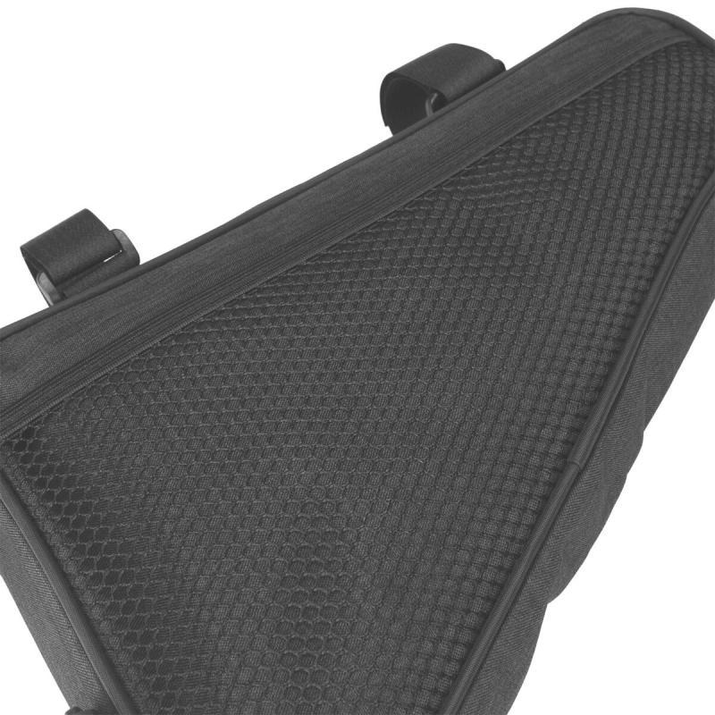 Brašna Triangle 2.0 tak poskytuje místo nejen pro klíče, peněženku a mobil, ale i pro cyklistické rukavice nebo základní nářadí pro případnou opravu. Svým tvarem brašna minimalizuje odpor vzduchu a nepřekáží nohám při šlapání. Triangle 2.0 brašna je zhotovená z pevného polyesterového plátna s vnitřním PU zátěrem, který ochrání obsah tašky před promočením i při nenadálé prudké bouřce.