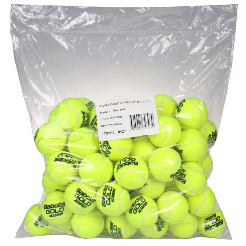 Vrece tenisových loptičiek Babolat Gold Academy s 72 kusmi beztlakových loptičiek, ktoré vynikajú dlhodobo stabilným výkonom, je obľúbené predovšetkým tenisovými trénermi. Beztlakové loptičky sú dlhodobo schopné si udržať svoj stabilný odraz, na rozdiel od súťažných loptičiek, ktoré síce pre svoj živší odraz vynikajú lepšími hernými vlastnosťami, ale nie sú schopné si dlhodobo udržať svoj odraz.Beztlakové loptičky Vám ponúkajú takmer nekonečne dlhý stabilný herný potenciál. Loptičky Gold Academy sú vhodné aj pre použitie tenisovými nahrávacími strojmi. Všestrannosť Gold Academy Vám umožňuje použitie na všetkých typoch kurtov, na antuke, tráve i na betóne bez markantného rozdielu. Každý hráč tenisu i tréner tenisu vie, aké je pre tréning užitočné mať vždy po ruke plný kôš loptičiek.