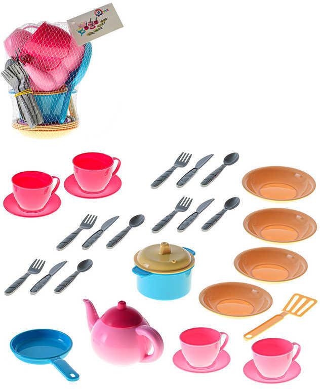 Baby dětské barevné nádobí holčičí velká sada 29ks v síťce plast