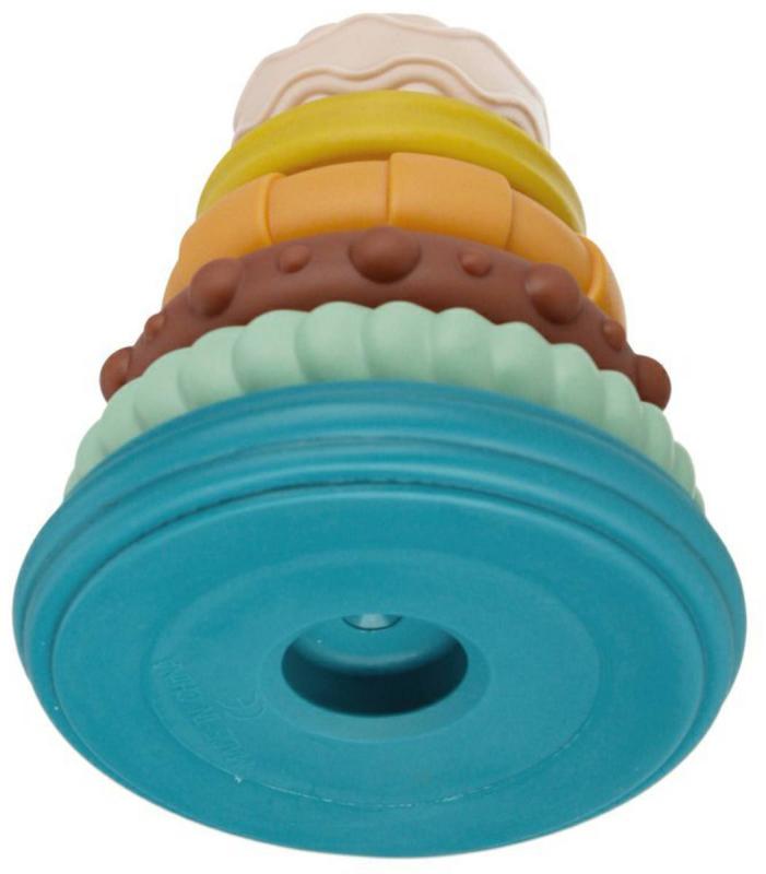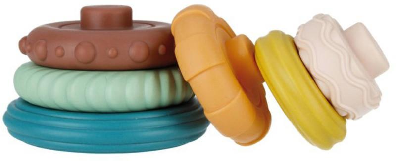 Edukační plastová pyramida stavebnice, kulaté dílky, různé textury, věžička pro nejmenší děti, pro miminko.Kruhy VZDĚLÁVACÍ PYRAMIDY jsou jako stvořené pro první období učení se třídit a procvičovat motoriku. Kaskádové kruhy a jejich následné natřásání přináší dítěti mnoho radosti a stimuluje ho k akci. Různorodá textura a nepravidelný povrch a kruhový tvar navíc obohacují hmatový zážitek a zintenzivňují hmat. Pastelové barvy stimulují smysl pro zrak a vnímání, hračka dokonale rozvíjí představivost a kognitivní schopnosti.