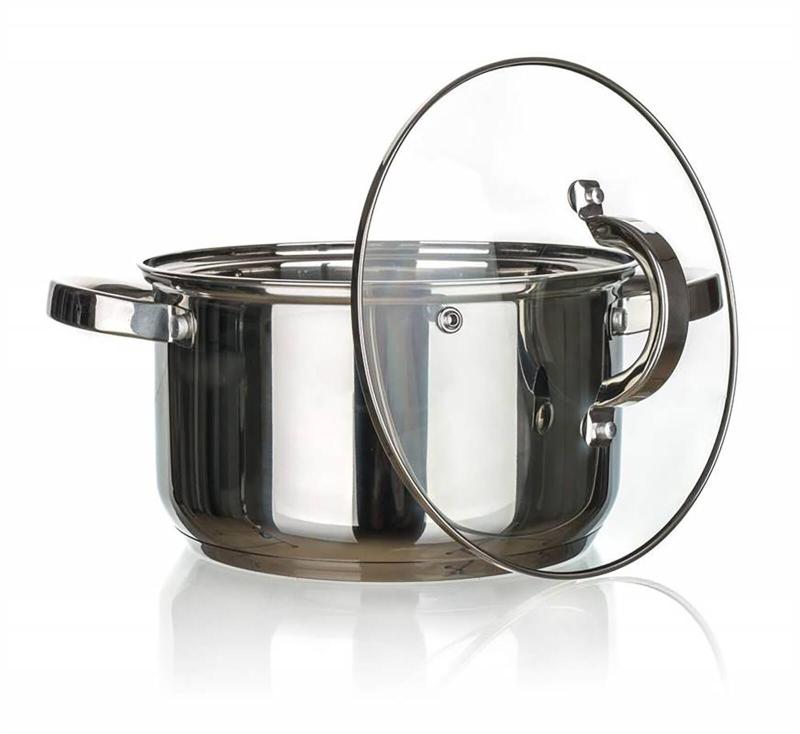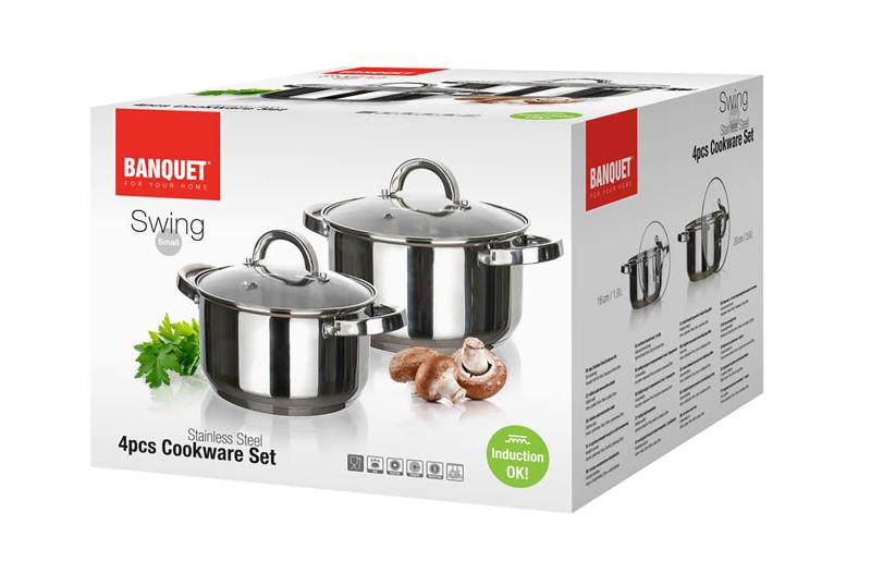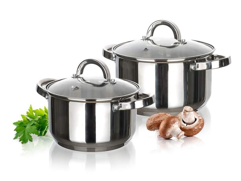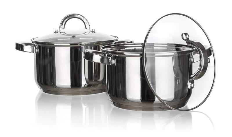 Sada nerezového nádobí SWING obsahuje dva hrnce se skleněnou poklicí.