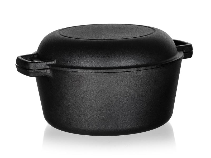 Poklice lze využít samostatně jako pánev na smažení nebo menší pekáč pro zapékání různých pokrmů. Tento multifunkční litinový hrnec je praktickým pomocníkem v každé kuchyni, který umožní připravit širokou škálu jídel s rovnoměrným výsledkem.