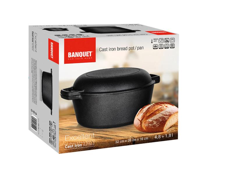 Rozměry hrnce jsou 32 x 26 x 16 cm, což nabízí dostatek prostoru pro pečení chleba, buchet, pizzy nebo zapékání zeleniny a brambor. Litinový materiál je masivní a po nahřátí udržuje teplotu, což přispívá k dosažení zlatavé, křupavé kůrky u pečiva.