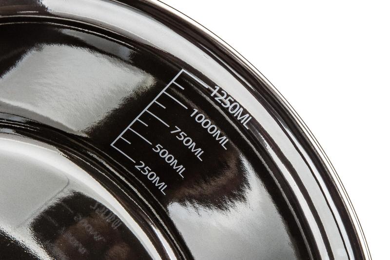 Tento smaltovaný hrnec v elegantní černé metalické barvě nabízí průměr 18 cm a objem 1,3 litru, což jej činí ideálním pro přípravu menších porcí jídel.