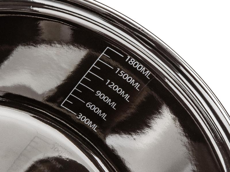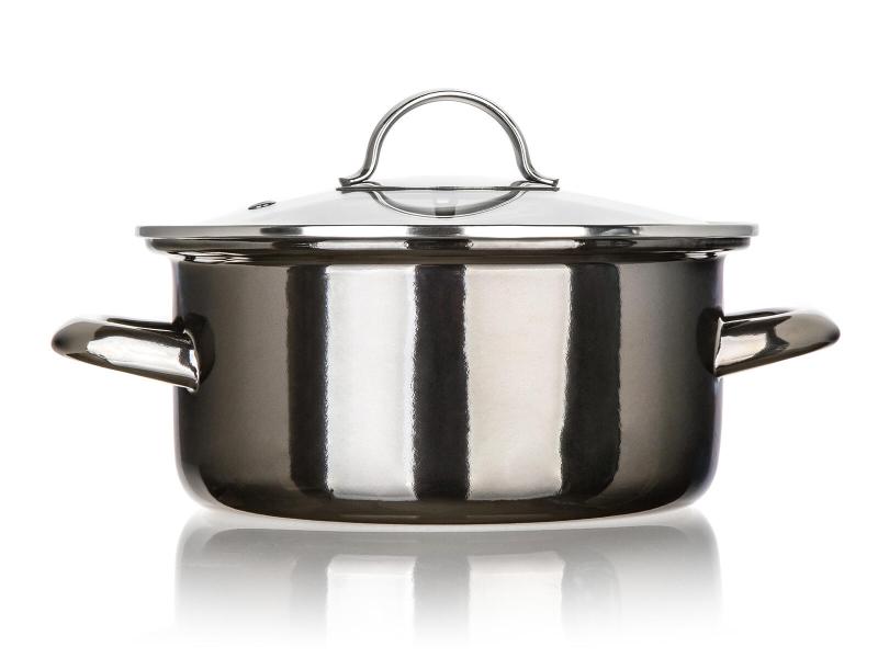 Hrnec je vyrobený ze smaltu, který je odolný vůči poškrábání a snadno se čistí. Díky kompatibilitě se všemi typy varných desek, včetně indukčních, je vhodný do většiny kuchyní. Černá metalíza dodává hrnci moderní vzhled a zároveň pomáhá skrýt případné nečistoty nebo drobné oděrky.