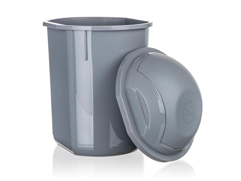 Koš odpadkový 22 l, v šedé barvě, s výklopným víkem, má jednoduchý a důmyslný zavírací mechanismus.