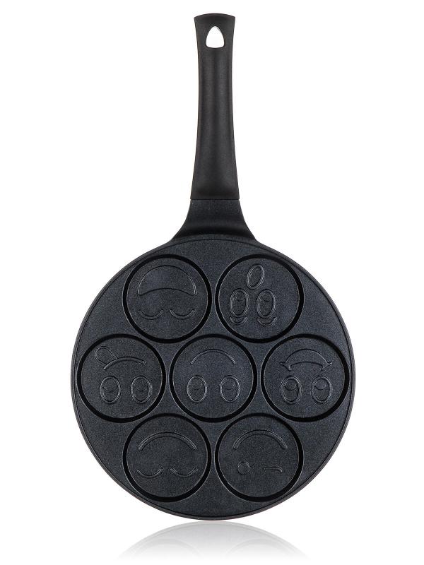 Hliníková litá pánev na 7 lívanců ALIVIA Smile má vnitřní nepřílnavý povrch a je vhodná na všechny typy sporáků včetně indukce.
