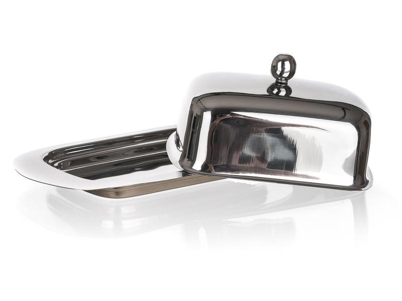 Praktická máslenka z nerezové oceli nabízí bezpečné uchování másla v lednici i pohodlné servírování na stole.