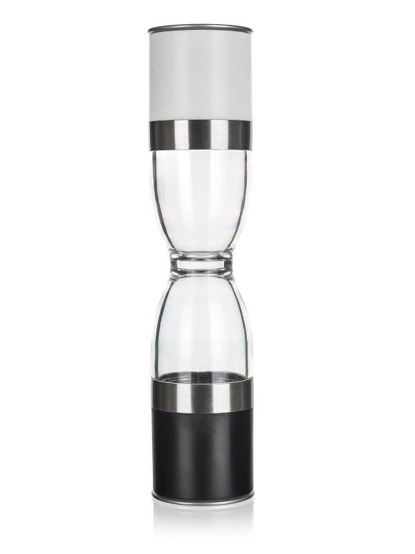 Mechanický mlýnek na sůl a pepř s keramickou mlecí mechanikou v nerezovém těle a akrylových zásobnících, výška 23 cm, průměr 5 cm. Zobrazit celý popis
