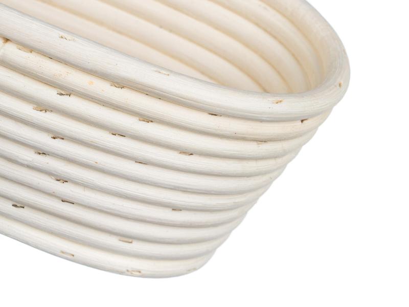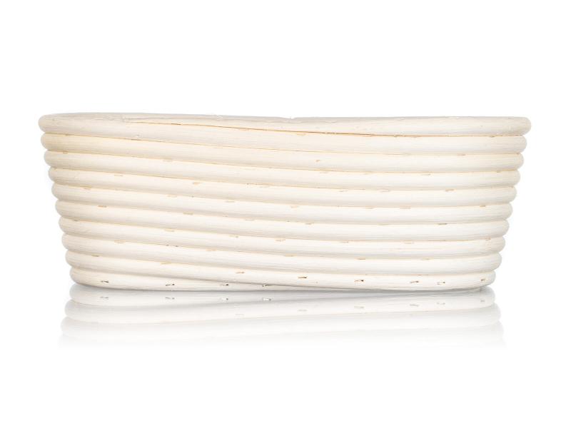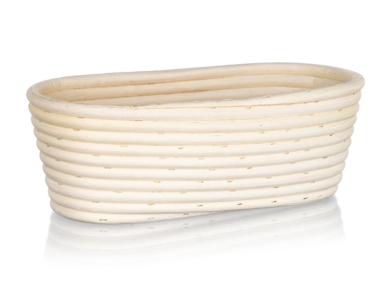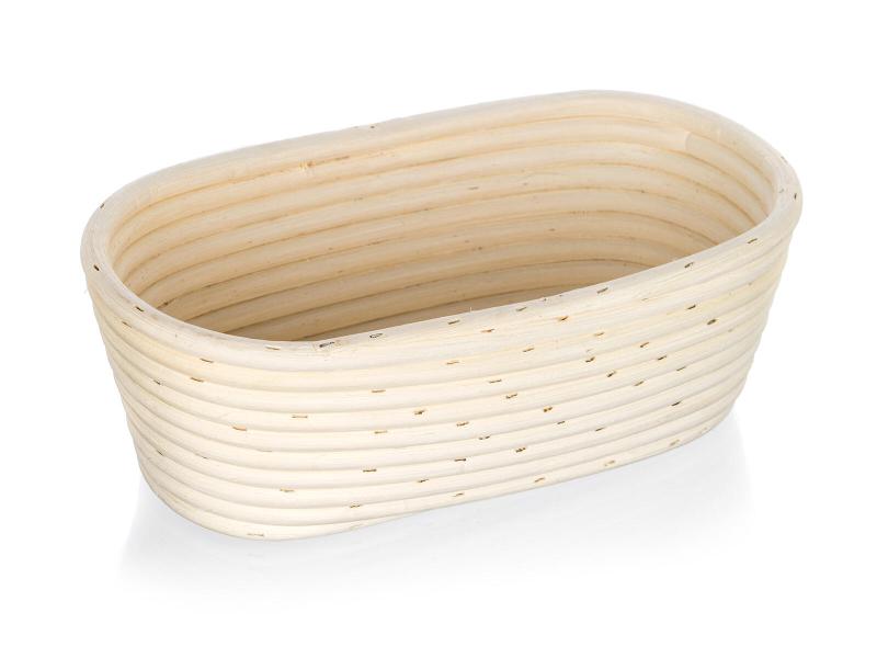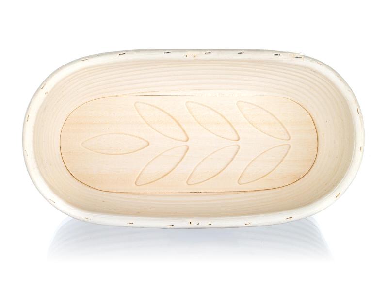 Oválná ošatka o rozměrech 26 x 13 x 9 cm je vyrobena z přírodního pedigu a zdobí ji dekor klasu, který dodává tradiční vzhled při kynutí chleba.