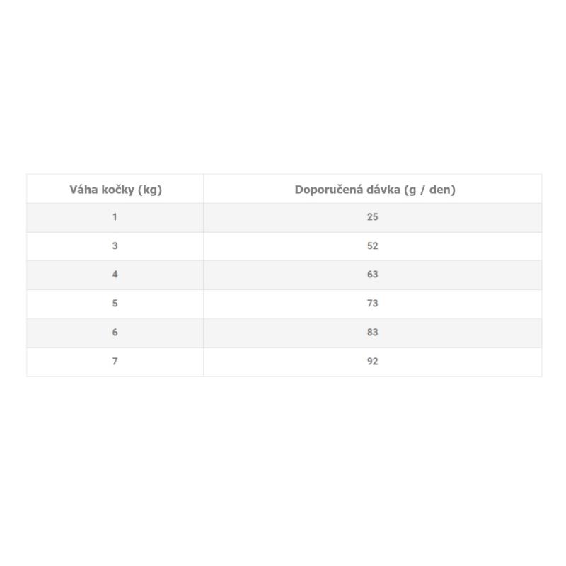 Jediný zdroj živočišných bílkovin - monoproteinová strava výrazně snižuje riziko vzniku intolerancí a potravinových alergií. Receptura je připravena s použitím čerstvého masa nejvyšší kvality. Hořčík pomáhá snížit pH v moči a omezuje tvorbu močových kamenů, zatímco juka pomáhá snížit zápach ve stolici. Zinek, vitamín A a mastné kyseliny pomáhají udržovat kůži a srst zdravou a lesklou. Prebiotika (FOS) přidaná do krmiva podporují střevní flóru zlepšující trávení a vstřebávání živin.