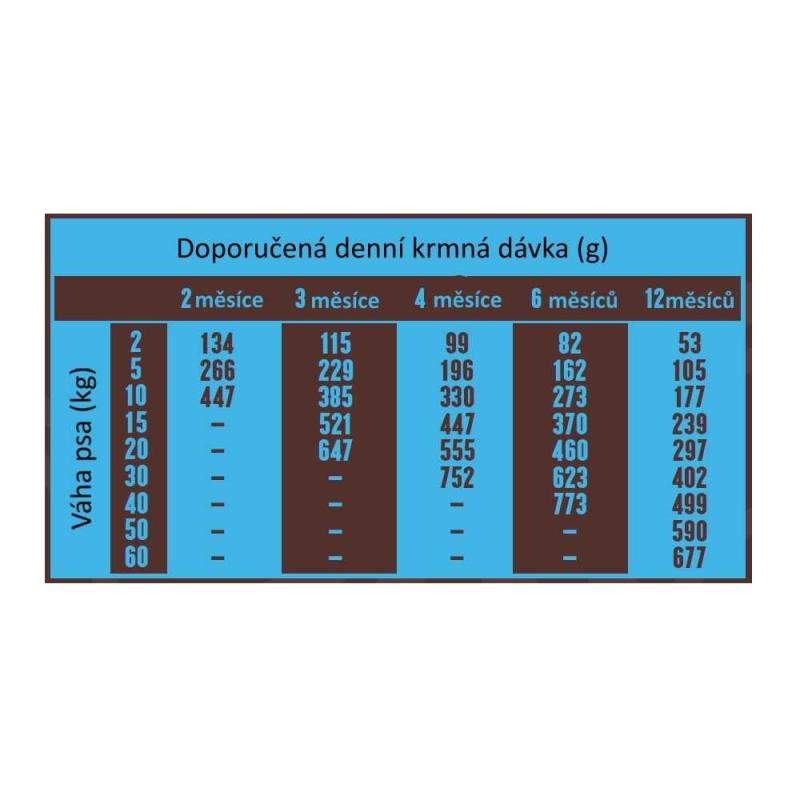 Jediný zdroj živočišných bílkovin - monoproteinová strava výrazně snižuje riziko vzniku intolerancí a potravinových alergií. Receptura je připravena s použitím čerstvého masa nejvyšší kvality. Zinek, vitamín A a mastné kyseliny pomáhají udržovat kůži a srst zdravou a lesklou. Granule pomáhají udržovat zuby a dásně čisté a zdravé. Správná rovnováha vápníku a fosforu napomáhá vývoji kostí a kloubů u rostoucích štěňat. Prebiotika (FOS & MOS) podporují růst střevní flóry, která zlepší trávení a vstřebávání živin. EPA + DHA podporují správný rozvoj zraku a nervového systému.