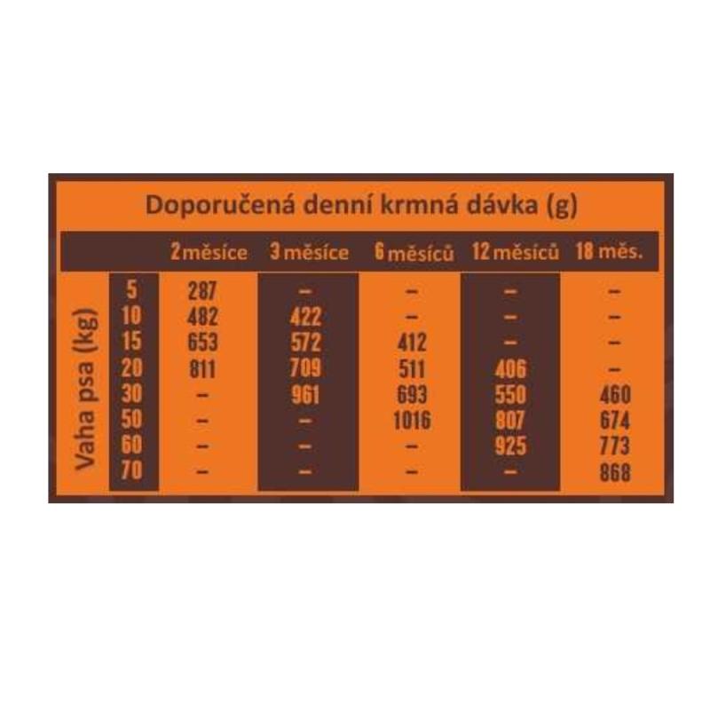 Jediný zdroj živočišných bílkovin - monoproteinová strava výrazně snižuje riziko vzniku intolerancí a potravinových alergií. Receptura je připravena s použitím čerstvého masa nejvyšší kvality. Větší granule, vhodné pro psy velkých plemen. Vyvynuto s optimálním množstvím tuků tak, aby napomohlo udržení zdravé váhy, a nedocházelo k poškození kloubů. Rovnováha vitaminů a minerálů posiluje imunitní systém. Zinek, vitamín A a mastné kyseliny pomáhají udržovat kůži a srst zdravou a lesklou. Granule pomáhají udržovat zuby a dásně čisté a zdravé. Správná rovnováha vápníku a fosforu napomáhá vývoji kostí a kloubů u rostoucích štěňat. Prebiotika (FOS & MOS) podporují růst střevní flóry, která zlepší trávení a vstřebávání živin. EPA + DHA podporují správný rozvoj zraku a nervového systému.
