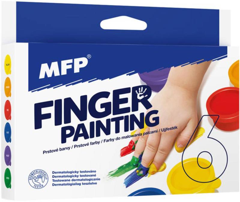 Obsah balení: prstové barvy 6x