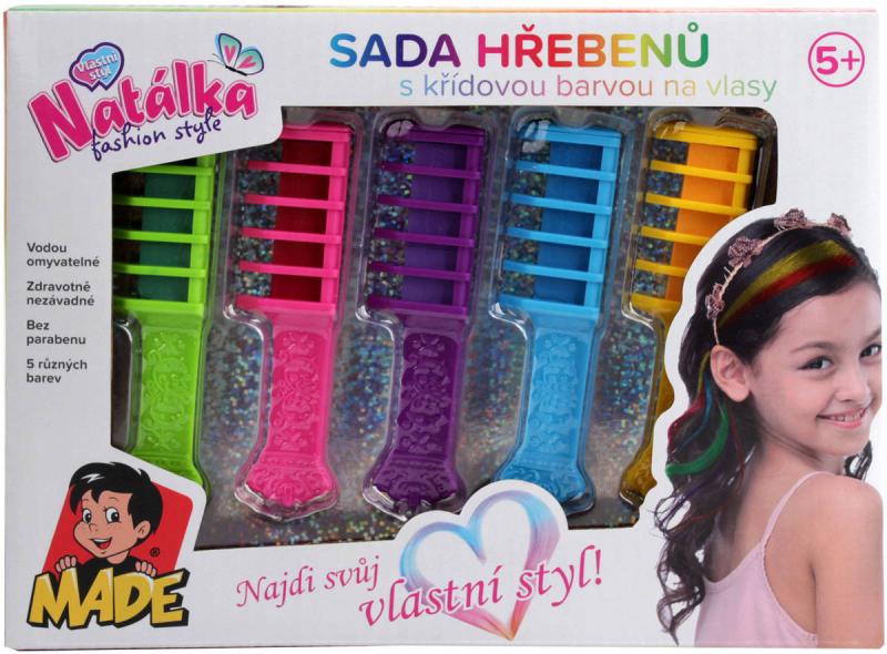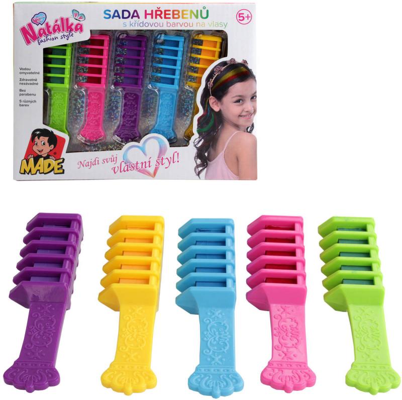 Barvy na vlasy Natálka dětský kadeřnický set hřebeny s křídovou barvou 5ks