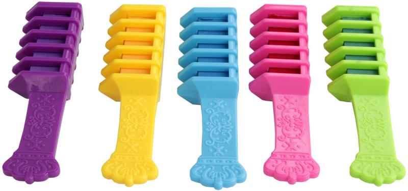 Hřebeny s křídovou barvou na vlasy jsou ideální volbou pro malé parádnice. Změna barvy vlasů? Proč ne? S tímto balením je to možné. Stačí si vybrat svou oblíbenou barvu nebo použít všechny najednou. Fantazii se meze nekladou. Najdi si svůj vlastní styl. Barvy jsou zdravotně nezávadné a snadno vodou (šamponem) smývatelné.