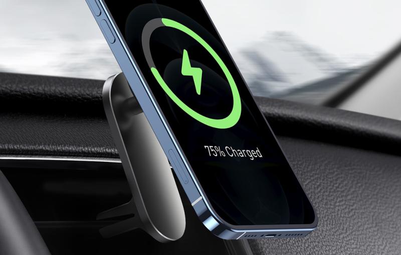 Kovový prvek uvnitř nabíječky pozitivně ovlivňuje rychlé a bezpečné nabíjení vašeho zařízení, takže se nemusíte obávat jeho přehřátí. Silné magnety NdFeB chrání telefon před pádem, maximální nosnost je 1000 g, což přibližně odpovídá 4 smartphonům Apple 12 Pro Max.
