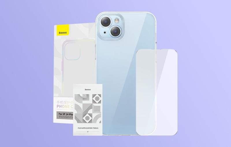 Baseus Pouzdro Crystal Series pro iPhone 14 Plus + tvrzené sklo