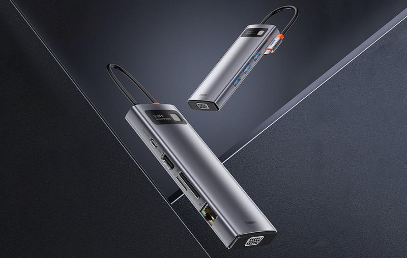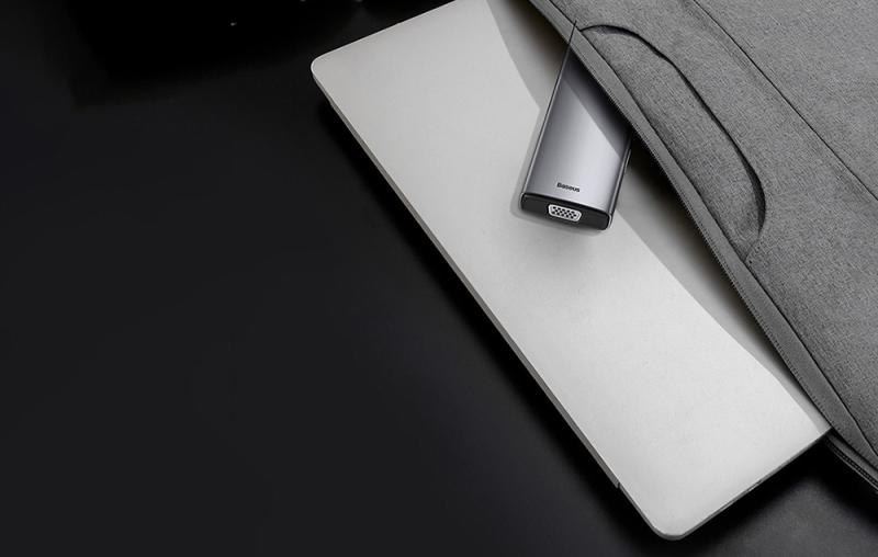 Nemá váš notebook dostatek portů? Máte zájem rozšířit jeho možnosti? Je to jednodušší, než si možná myslíte! Multifunkční rozbočovač 9 v 1 od společnosti Baseus je vybaven 3 porty USB 3.0, 1 USB-C, 1 HDMI, 1 VGA a 1 ethernetem. Má také sloty pro karty SD a TF. Podporuje vysokorychlostní přenos souborů až 5 Gb/s a dokáže zobrazit až 4K video. Podporuje také rychlé nabíjení PD 100 W na portu USB-C. Vyniká také neuvěřitelně efektivním odvodem tepla a širokou kompatibilitou. Zjistíte, že se vám vyplatí používat jeden port na počítači, abyste jich místo toho měli až 9!