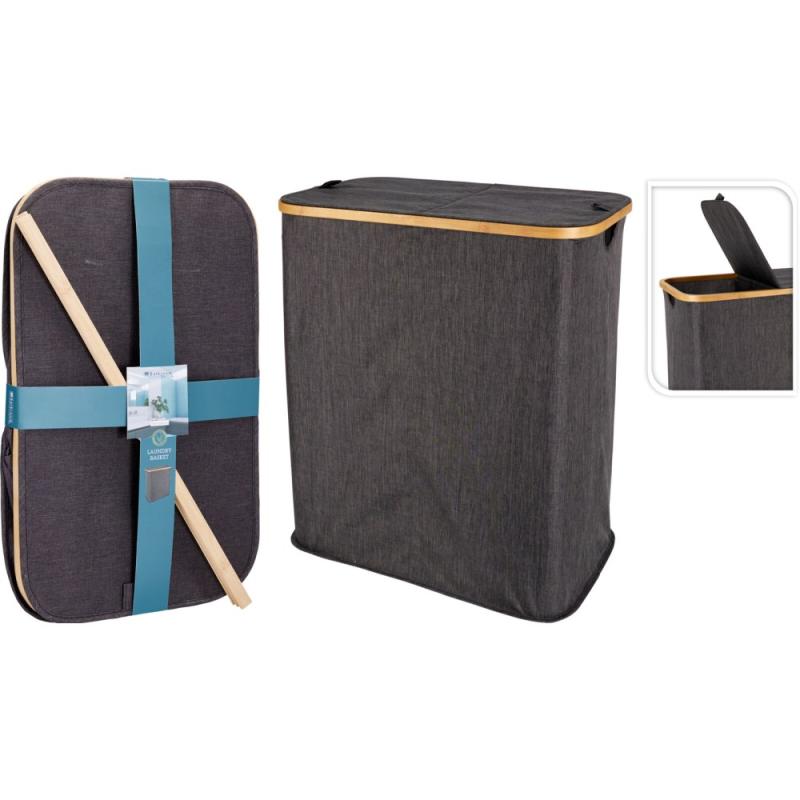 Bathroom Solutions Koš na prádlo s bambusovým okrajem 54 x 33 x 60 cm tmavě šedá