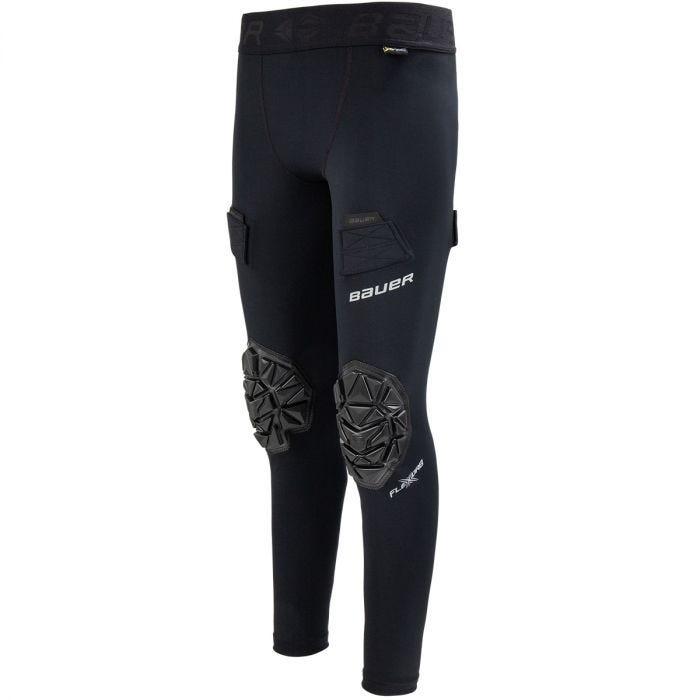 Seniorské brankářské kompresní kalhoty s chrániči na kolena z XRD pěny a suchými zipy na uchycení stulpen.