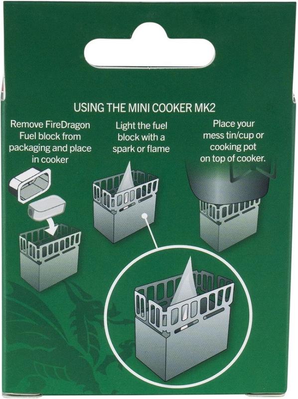 Vařič je navržen především pro použití s palivy Fire Dragon, která zajišťují nejlepší výsledky, nicméně lze využít i jiná vhodná pevná paliva. Palivo není součástí balení, proto je třeba jej dokoupit zvlášť.