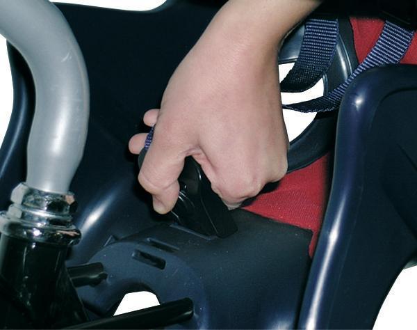 - Upevnění na kolo: držák na hlavovou trubku, který umožňuje velmi rychlou montáž a demontáž sedačky na rám kola.