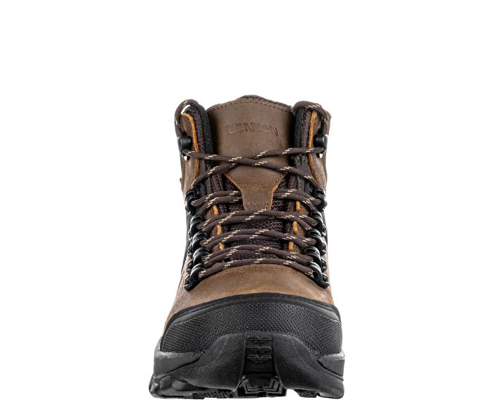 Obuv se vyznačuje odolnou kůží, prodyšnou podšívkou a pevnou fixací kotníku. Protiskluzová podešev a ochrana špice zajišťují bezpečnost a dlouhou životnost, což z ní dělá spolehlivého společníka pro práci i volný čas v přírodě.