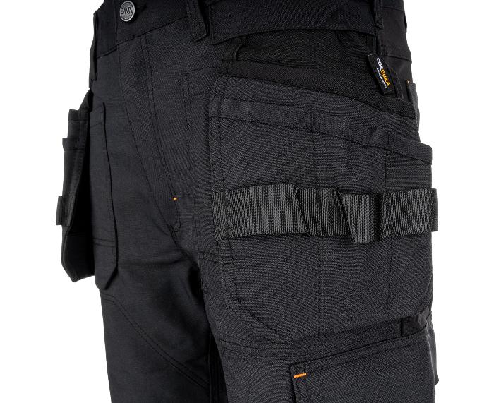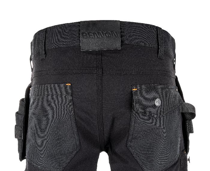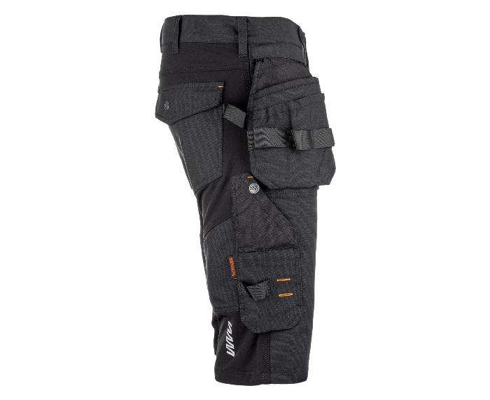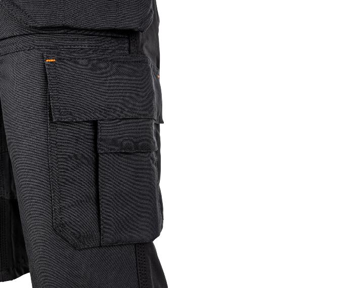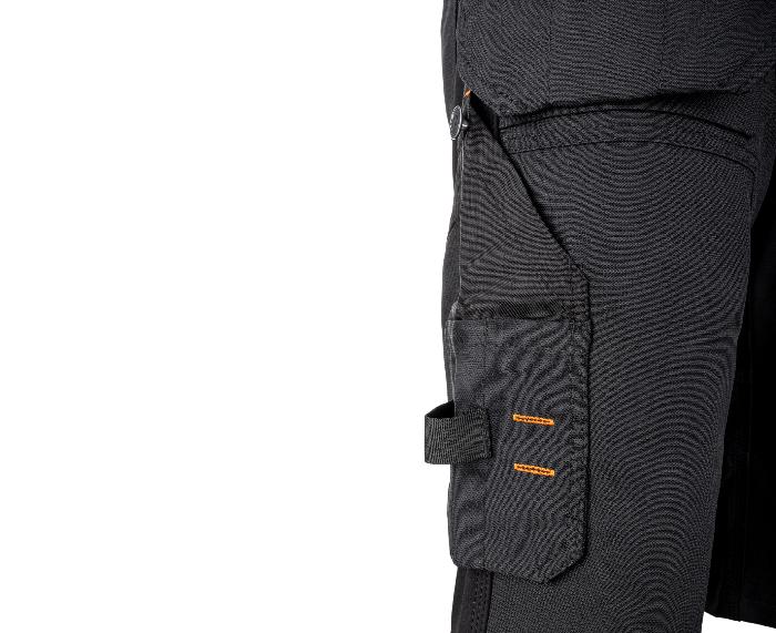 Pánské strečové pracovní kraťasy- velmi pevný, odolný materiál, v oblasti sedu a rozkroku velmi pružný- namáhané části v oblasti kapes jsou zpevněné materiálem Cordura, což znamená, že se vyznačují vysokou pevností a odolností vůči otěru a jiným mechanickým poškozením.- reflexní prvky na nohavicích pro lepší viditelnost- odepínací kapsy na nářadí- kapsy na šroubováky, hřebíky a kladiva- poutka na zavěšení nářadí- kapsa na skládací metr- kapsa na mobilní telefon