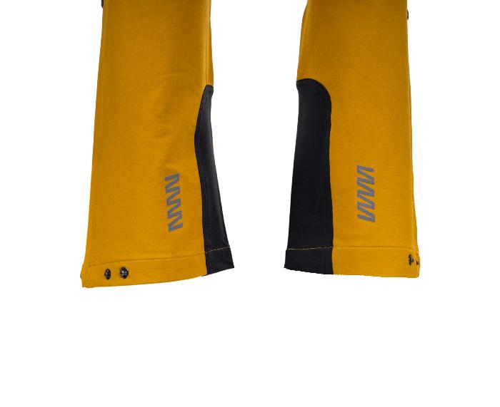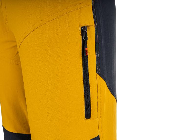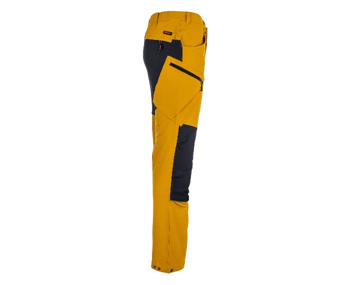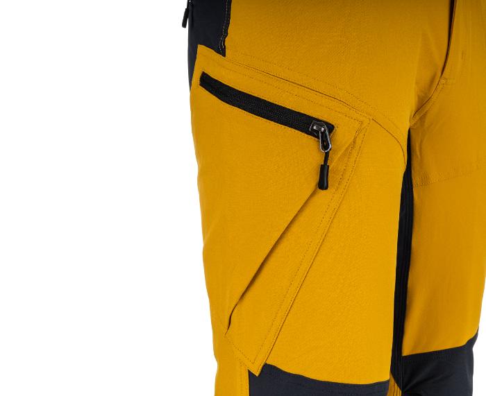 Barva kalhot je kombinací okrové a šedé, což dodává oděvu moderní a praktický vzhled vhodný pro různé pracovní prostředí i outdoorové aktivity.