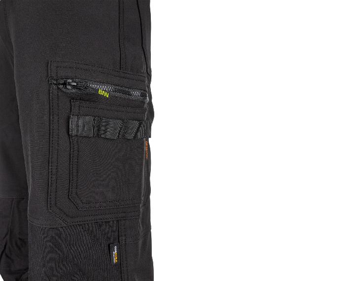 Kalhoty jsou připraveny i pro vložení kolenních vkládek, což umožňuje zvýšit ochranu a komfort při práci v kleče. Vnější materiál je vyroben z odolné Cordury, která zajišťuje dlouhou životnost i při častém používání v náročných podmínkách.