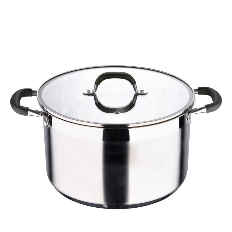 Velký nerezový hrnec s poklicí o objemu 9,5 l vhodný na indukční, plynové i elektrické sporáky, snadno se udržuje a nabízí bezpečné silikonové rukojeti.Tento hrnec s víkem představuje praktického pomocníka pro vaření větších porcí jídel i skladování v kuchyni. Kombinuje funkčnost s moderním designem, který ozvláštní každou kuchyňskou linku. Díky kvalitní nerezové oceli nabízí vynikající tepelnou vodivost a dlouhou životnost, což ocení každý, kdo vaří pravidelně nebo připravuje jídlo pro více osob.
